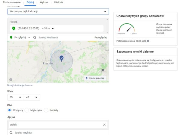 Np. Kobiety i mężczyźni w wieku 35-45 lat będący w promieniu 3km od Twojego miejsca.