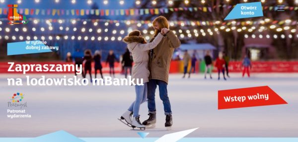 Atrakcyjną ofertą, która sprawia, że ludzie przychodzą do mBanku zakładać konta stało się SZTUCZNE LODOWISKO, kawa i łyżwy. Sztuczne lodowisko stało się placówką, a placówka stała się sztucznym lodowiskiem.